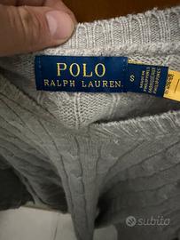 Maglione 100% cotone ralph lauren scollo a V , polo da donna colore grigio. Non ci sono segni di usura, conservato perfettamente con i lavaggi