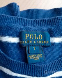 Maglione blu a righe in cotone POLO Ralph Lauren. Per bambini di 7/8 anni IN OTTIME CONDIZIONI