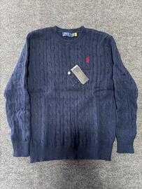 Classico intramontabile: maglione Polo Ralph Lauren blu navy con iconica lavorazione a trecce (cable-knit).