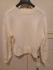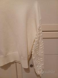 Si propone in vendita un maglione / pullover bianco con eleganti maniche lavorate, da donna, taglia IT N. 42 in buone condizioni.