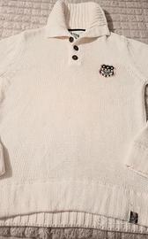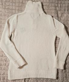 Bellissimo Maglione Pullover Tommy Hilfiger linea Denim tg.M Nuovo, colore bianco/avorio, mai indossato, 100%cotone. Questo maglione è un pullover a maniche lunghe caratterizzato da un collo alto con chiusura a bottoni e un logo applicato sul petto, collo alto "chunky".
