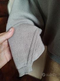 Maglione 100% cachemire beige chiaro di Drumohr taglia 44. Con collo a girocollo ampio rifinito in raso a taglio vivo. Elastico in vita e sulle maniche. Rifinito splendidamente, come si vede dai dettagli nelle foto: lavorazione di qualità.