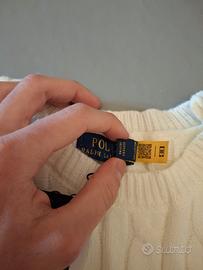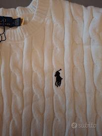 Maglione Ralph Lauren in maglia a trecce nella classica tonalità bianca