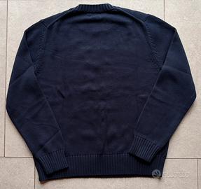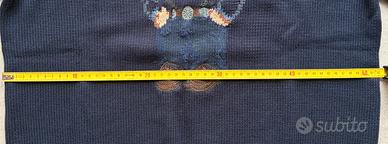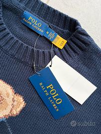 Maglione Ralph Lauren da uomo, colore blu, con iconico orso ricamato sul fronte.