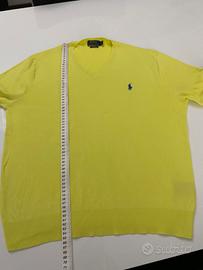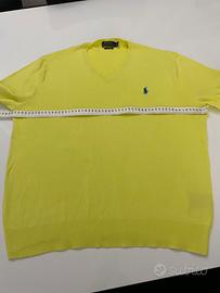 Maglione originale Ralph Lauren in un vivace colore giallo lime con logo blu ricamato sul petto.