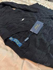 Vendo maglione originale Polo Ralph Lauren con scollo a V, colore nero, lavorazione a treccia.
