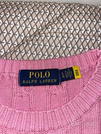 Maglione Ralph Lauren Rosa con logo blu notte, taglia L. Misure allegate in foto