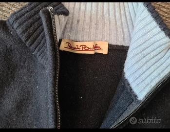 Maglione 100% lana Blu scuro, con colletto interno azzurro. Taglia L Mai indossato