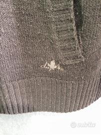 Maglione di colore marrone DU&KA , 100 % Acrilico usato ma tenuto bene. Tiene molto caldi,con tasche.