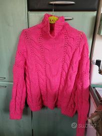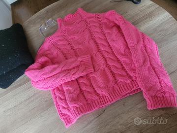 Maglione da donna con un design a trecce unico e accattivante. Il colore rosa acceso lo rende un capo vivace e alla moda.
