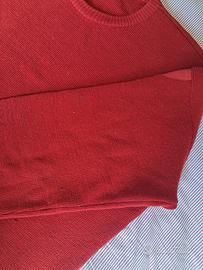 Maglione invernale rosso, morbido e spesso. Materiale caldo, adatto per i mesi freddi. Perfetto da indossare sopra camicie o da solo. Condizioni buone, senza difetti visibili.