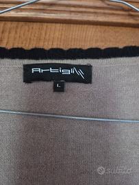 Maglione con scollo a V ampio. Dettaglio con fiocco sotto al seno. Caldo cotone. Come nuovo. Taglia L. Artigli