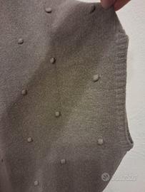 Maglione lungo senza maniche con foto dettaglio collo e manica, color tortora made in italy