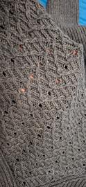Vendo il maglione in foto, marca Sisley, manica raglan, in buone condizioni. Taglia L, materiale 30% lana. Colore blu-grigio, maglia traforata (vedere foto). Misure in cm: Ascelle 51 Manica 75 Ascella-fondo 42