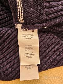 Maglione donna SLAM, misura M, colore blu navy e righe bianche, orlo, colletto e polsini a costine donano questo maglione un look classico che assicura il massimo calore. Maglia a girocollo in misto lana/ cotone.