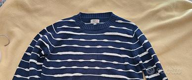 Maglione donna SLAM, misura M, colore blu navy e righe bianche.