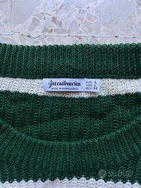 Maglione a righe verde e panna Stradivarius, taglia L