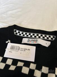 Vendo maglione originale SUN68 linea Good Game, taglia S, colore nero con motivo a scacchi bianchi e logo ricamato multicolore sul petto. Nuovo mai indossato, con etichetta e cartellino prezzo ancora attaccato (159 €). Collezione Autunno/Inverno 2021.