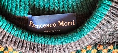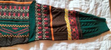 Caldo maglione in misto lana d'alpaca con belle lavorazioni di greche, trecce e costa inglese nei colori del verde,marrone e arancione.Le misure sono elencate nell' ultima foto