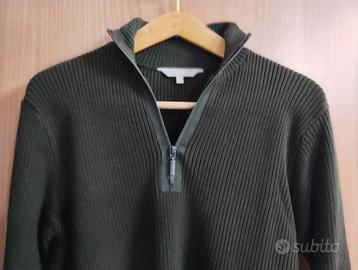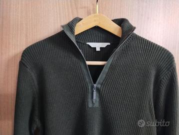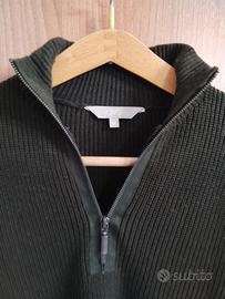 caldo e sportivo maglione di colore verde cachi con cerniera. 50% cotone e 50% acrilico. taglia indica M (spalle 42 centimetri, lunghezza 66 cm). marca Ovs. perfetto e privo di difetti il maglione viene spedito lavato e stirato.