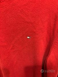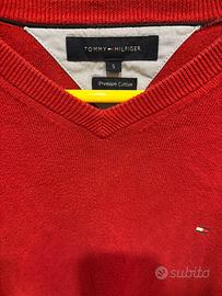 Maglione tommy hilfiger rosso in perfette condizioni con scollatura a V. Taglia S