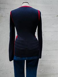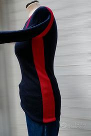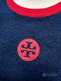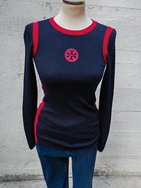 Maglione Tory Burch in Lana merinos di colore blu notte con inserti rosso lacca
