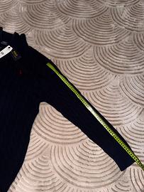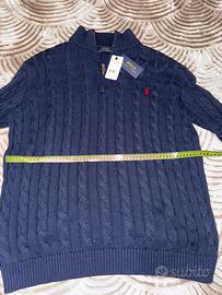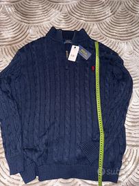 Titolo Suggerito Maglione Polo Ralph Lauren Quarter-Zip XL - Blu Navy Trecciato - 100% Cotone Descrizione del Prodotto Brand: Polo Ralph Lauren Modello: Maglione a trecce (cable-knit) con mezza zip (quarter-zip) Taglia: XL Colore: Blu Navy classico con logo Pony rosso ricamato Materiale: 100% Cotone di alta qualità Condizioni: Nuovo con cartellino (NWT) Splendido maglione Polo Ralph Lauren, un classico intramontabile del guardaroba maschile. Il tessuto in 100% cotone a maglia intrecciata offre comfort e traspirabilità, ideale per tutte le stagioni. Presenta l'iconico logo del giocatore di polo ricamato in rosso sul petto e una pratica chiusura a mezza zip con tirante in pelle. 📏 Misure precise (come da foto): Per garantire la massima precisione, ecco le misure rilevate con metro sartoriale: • Lunghezza totale: circa 71 cm (dalla spalla al fondo) • Larghezza ascella-ascella: circa 61 cm • Lunghezza manica: circa 66 cm (dalla cucitura della spalla al polsino) Non esitare a contattarmi per ulteriori informazioni o foto extra!