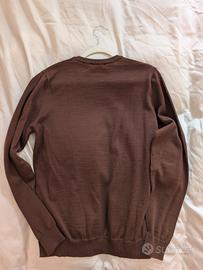 Vendo maglione Trussardi, made in Italy, metà lana e metà Acrilico, colore marrone con scritta rossa, usato pochissimo come nuovo.