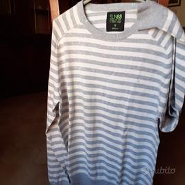 Maglione uomo taglia M a righe grigio chiaro e bianco latte, giro collo .