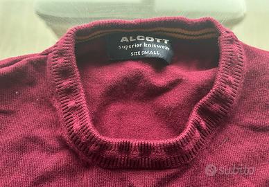 Maglione uomo leggero a girocollo taglia S marchio Alcott, pari al nuovo indossato 1 volta, pttima vestibilita’, con lavorazione particolare sul collo e suo polsini.