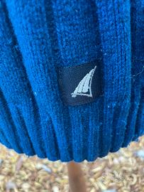 Maglione da uomo color blu navy, stile classico/marinaro, con lavorazione a costine verticali.