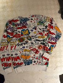 Bellissimo maglioncino da uomo, con stampa a fumetti multicolor. Ottimo per ragazzi, disegni colorati e molto belli, comodo.