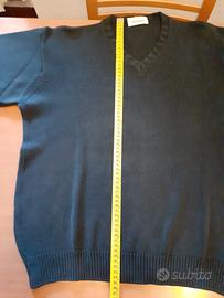 Bel maglione da uomo effetto vintage color blu cotone 100 p.c. made in Italy tg 48 a marchio Al Duca d'Aosta, nota boutique veneta. Misure come da foto.