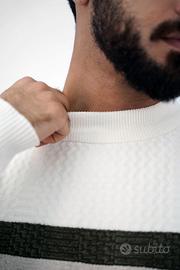 Maglione Uomo Elegante Bianco con Fascia a Contrasto – Stile Italiano Moderno – Slim Fit Casual Chic