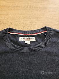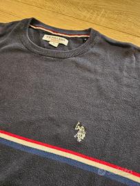 Maglione Polo Assn. da uomo, taglia L. Colore blu con riga bianca e rossa al centro.