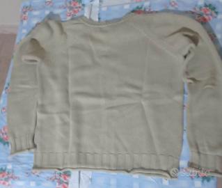Maglione uomo FILA, stile vintage primi anni 2000, colore beige/sabbia, modello girocollo, maniche lunghe, lavorazione a maglia classica, piccolo logo FILA sulla manica, 100% cotone, tessuto di buona qualità, ottime condizioni generali, taglia L (48).