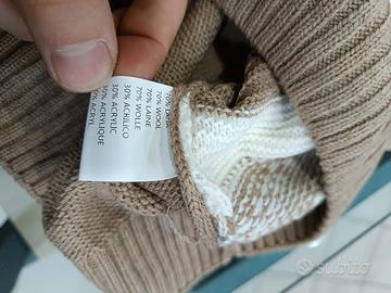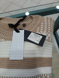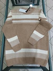 Nuovo con cartellino taglia S modello girocollo colore nocciola e bianco prezzo di cartellino 139 tessuto folto ma morbido e comodo da indossare