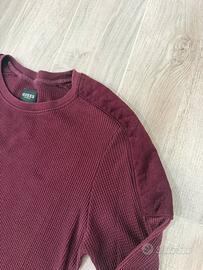 Maglione uomo Guess taglia M bordeaux. Sulle spalle ha degli inserti in ecocamoscio