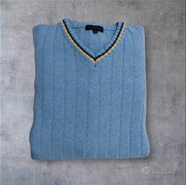 bellissimo maglione uomo di colore celeste, con scollo a V taglia 52. 80% Lana 20% acrilico. Morbidissimo e caldo.