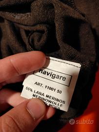 Vendo maglione da uomo marca Navigare, taglia M. Indossato pochissimo, non presenta alcun segno o difetto. Come si vede dall'etichetta il materiale è 55% lana merinos e 45% acrilico.
