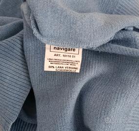 Maglione uomo mezza zip a marchio Navigare, modello mezza zip, in misto lana colore celeste, profilato su spalle e inserti colore blu in contrasto.