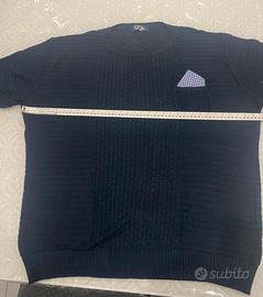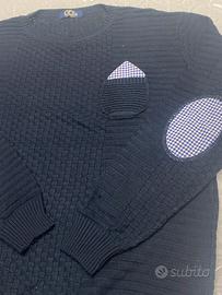 Elegante maglione da uomo in maglia blu con dettagli a quadri.