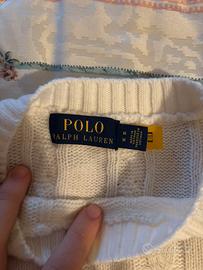 Maglione da uomo Polo Ralph Lauren colore bianco, iconico modello con Polo Bear ricamato sul davanti. Taglia M uomo.