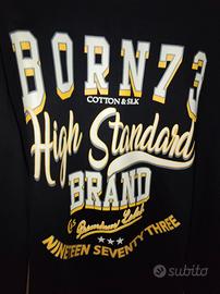 Nuovo maglione per uomo della Cotton & Silk, in 100% cotone, taglia XXL nero con scritte gialle, pratico e sportivo.
