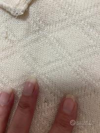 Lato esterno sta bene a parte un piccolissimo punto da riprendere con soli due punti che non compromette affatto il maglione vedi ultima foto ma è molto ingrandita l’immagine.