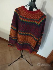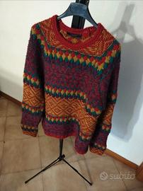 Maglione a maglia grossa con un vivace motivo geometrico multicolore della linea Zara Man. Taglia L. Il maglione presenta un motivo jacquard a righe orizzontali con diverse trame e colori, tra cui rosso, bordeaux, viola,verde e giallo. Misto lana. Pullover a girocollo con maniche lunghe. Vestibilità regolare. Condizioni del prodotto. È perfetto. Morbido al tatto.
