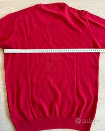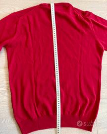 Maglione US POLO ASSN da uomo colore rosso acceso in 100% cotone, con toppe blu sui gomiti e logo us polo ricamato sul petto.