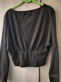aderente. lana. taglia m. maniche a pipistrello e stretto in vita.