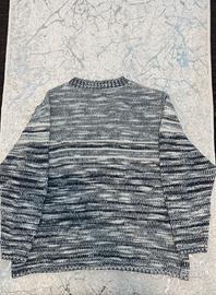 Vendo maglione originale Versace Jeans Couture, taglia L, caratterizzato da un elegante mix di colori: bianco, blu e nero.