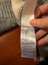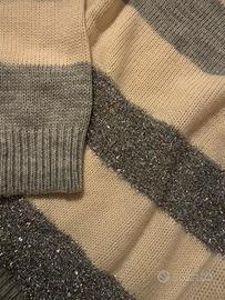 Maglione Vicolo a righe bianche e grigie con dettagli metallizzati.